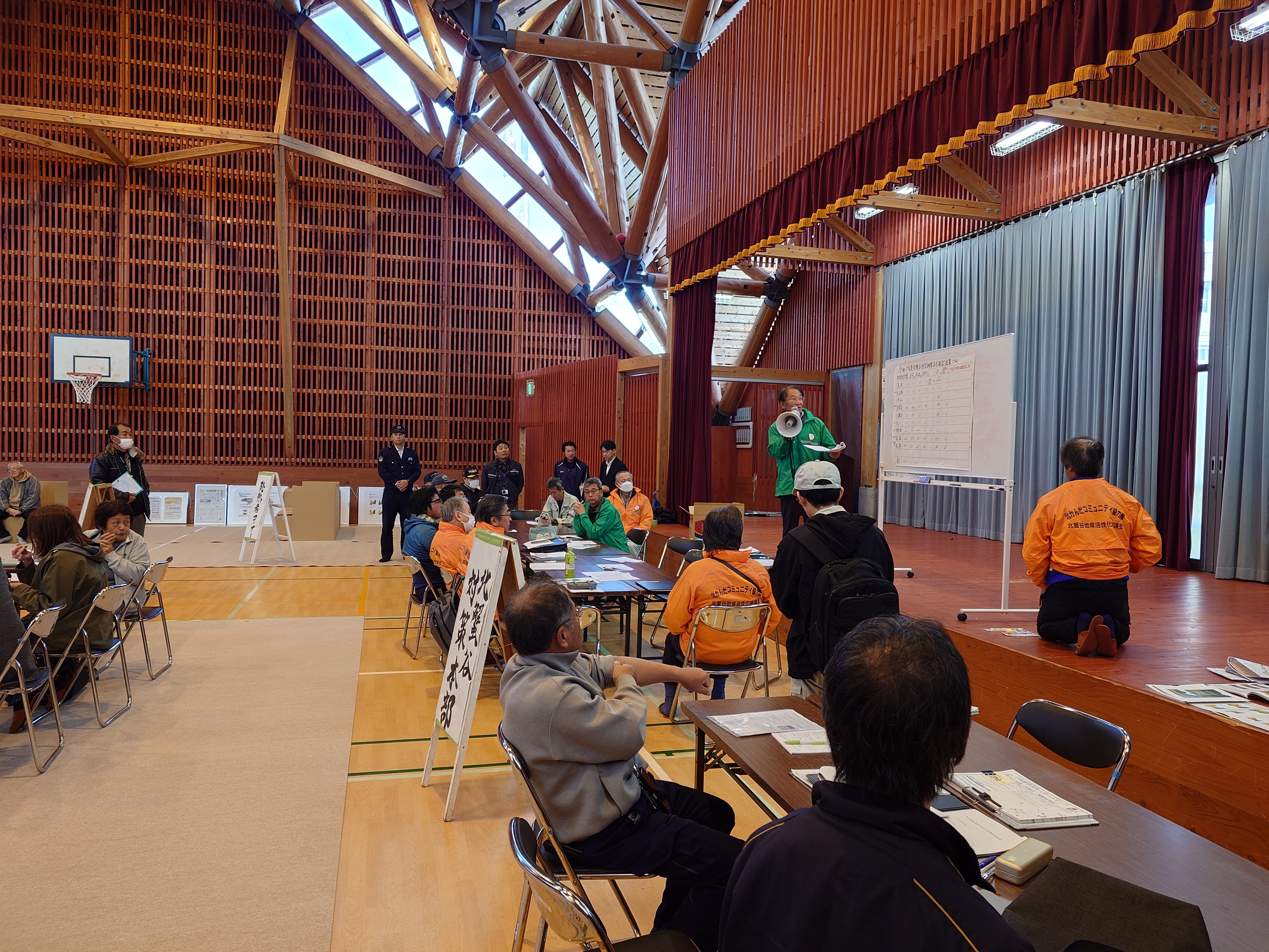 を行いました。地区住民1060名の安否確認、北蟹谷避難所への避難者受け入れ等の運営訓練に約80名が参加しました。